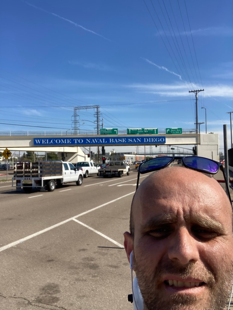 Leaving Ben’s house in San DiegoI am smiling as the walk starts, carrying my heavy violin case.